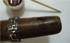 Door nu de hooggelegen delen te schuren met een fijn schuurpapier of plaatelijk te polijsten met de agaatpen of polijstpen kunt u sommige delen weer zilver laten glanzen. Na het zwarten het sieraad neutraliseren met zuiveringszout (baking soda) . Het sieraad eventueel fixeren met wax of lak.