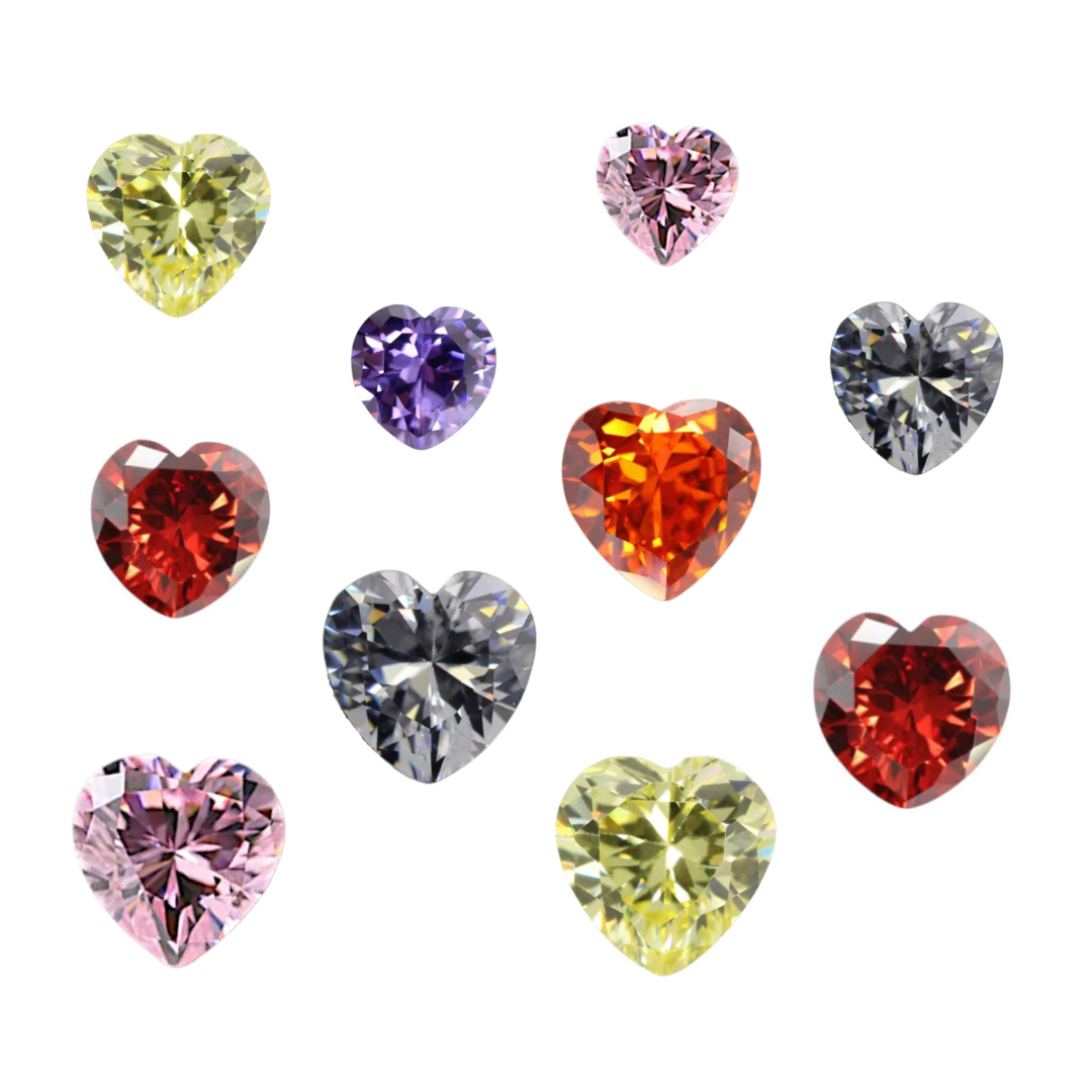 Set met hartjes zirconia. 10 stuks in 2 maten. 5xA hittebestendig