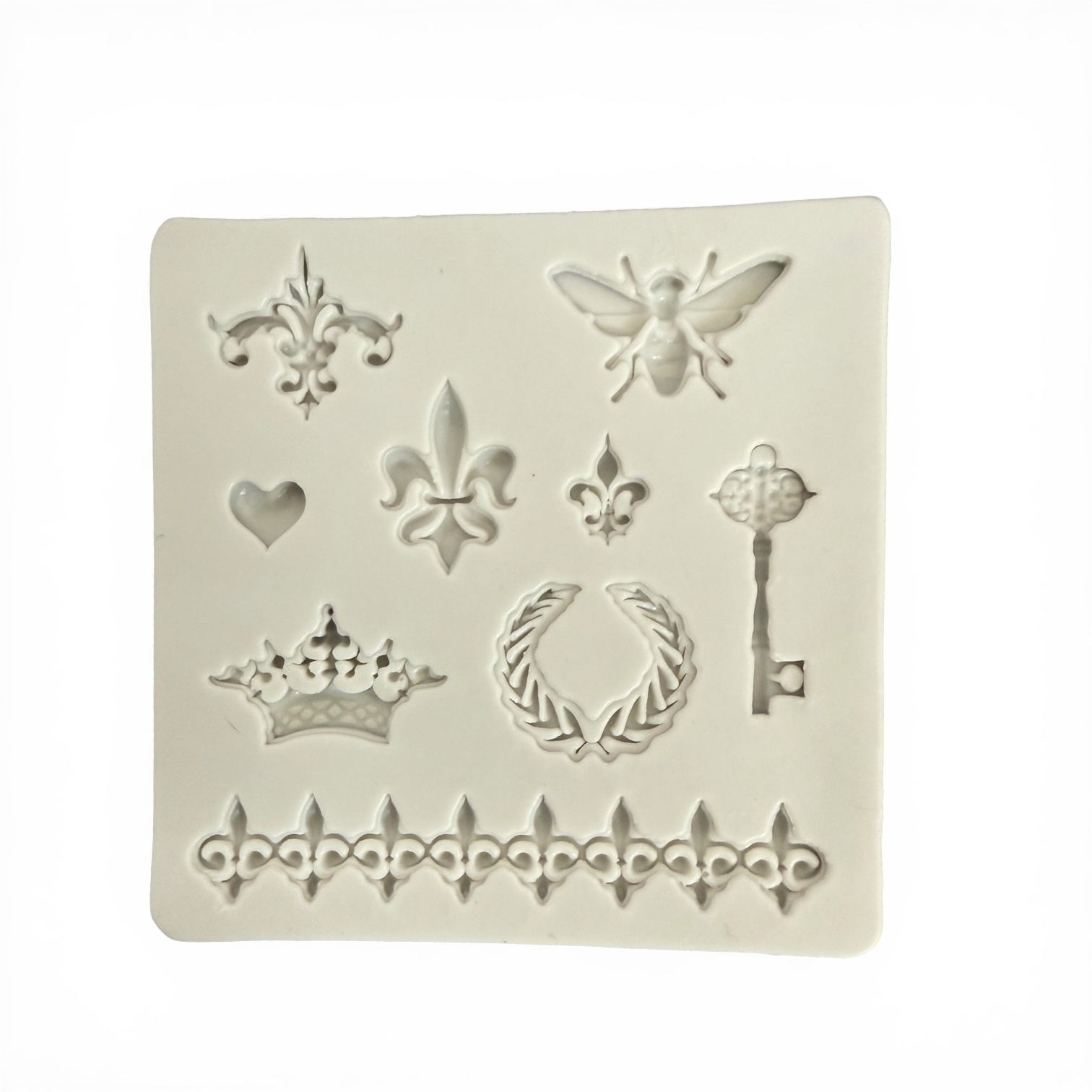 Siliconen mal met mini Fleur de lis, sleutel, kroon en andere ornamenten