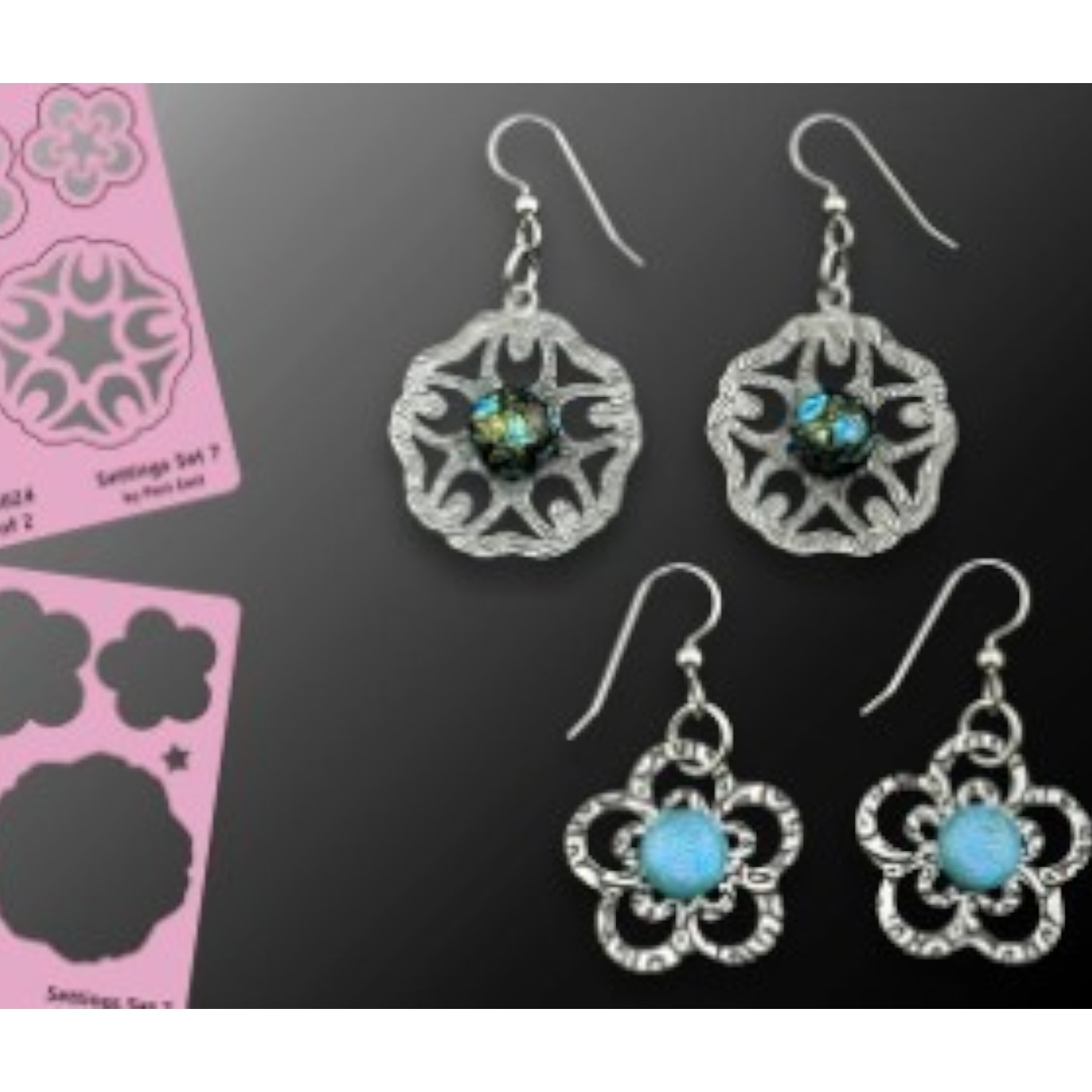 Template voor sieraden maken. Transparant, waardoor makkelijk in gebruik en goed te positioneren. Gebruik een naaldpen voor het uitsnijden. Dat geeft het beste resultaat.